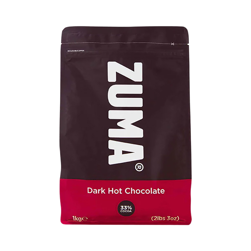 Zuma Dark Hot Chocolate is made with 33% West African cocoa. You could describe its style as European - expect an intense chocolate taste.